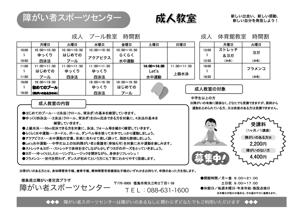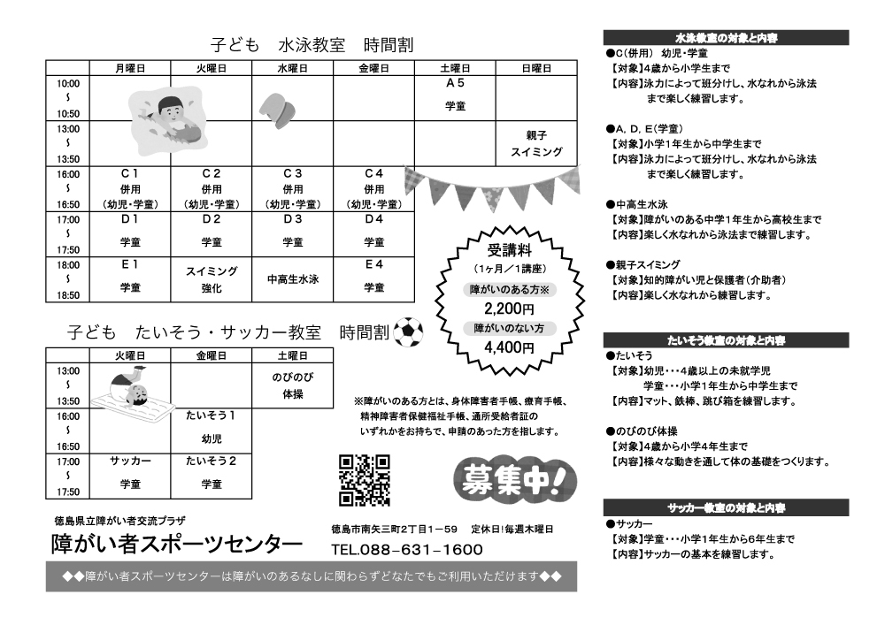 4.各種障害者手帳をお持ちの方は、申込時に確認させていただきます。